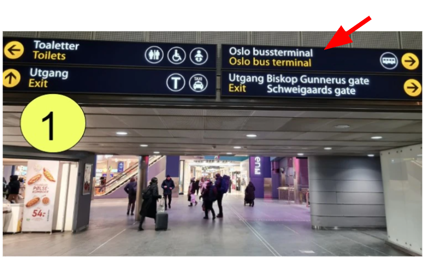 When at the Oslo Central Station, find your way to Oslo Bus Terminal. Follow the signs.