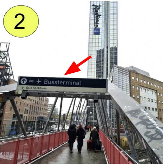 Walking bridge from Oslo Central Station to Oslo Bus Terminal and Galleri Oslo. Follow the signs to Oslo Bus Terminal.